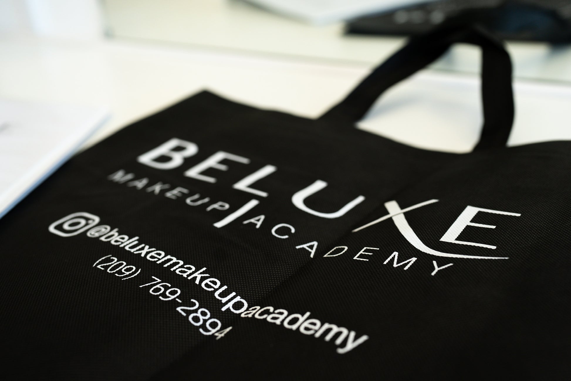 Reusable, sturdy, non-woven tote shopping bag with our custom logo.